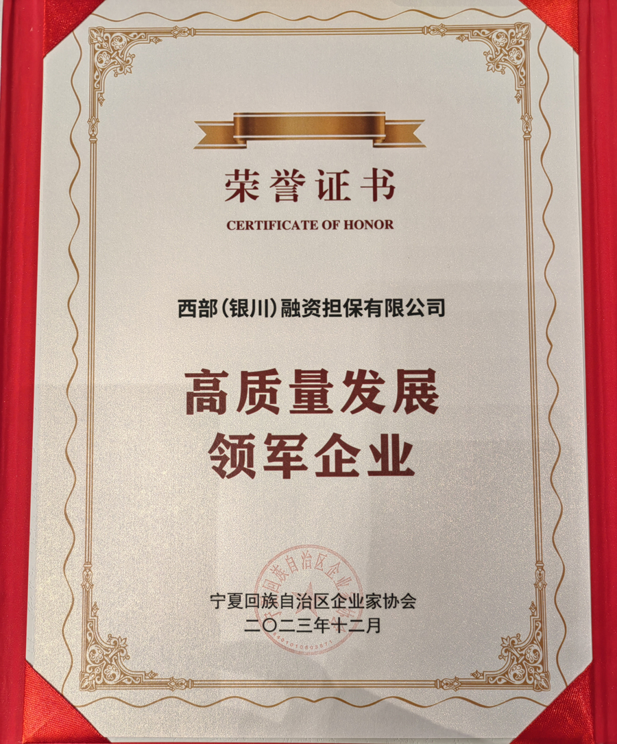 西部(銀川)融資擔保有限公司是經銀川市委、政府批準并出資設立的以擔保為主業的專業金融服務機構,于2014年7月正式掛牌成立,注冊資本45.87億元,是AA+級擔保機構,為中國銀行間市場交易商協會會員單位,中國融資擔保業協會副會長單位,累計七次蟬聯國內金融領域最權威的《金融時報》“金龍獎,累計四年榮獲“自治區金融服務創(chuàng)新獎,憑借創(chuàng)新優(yōu)勢、規(guī)模優(yōu)勢、品牌優(yōu)勢躋身國內擔保行業前列,成為國內具有核心競爭力和品牌影響力的擔保機構。